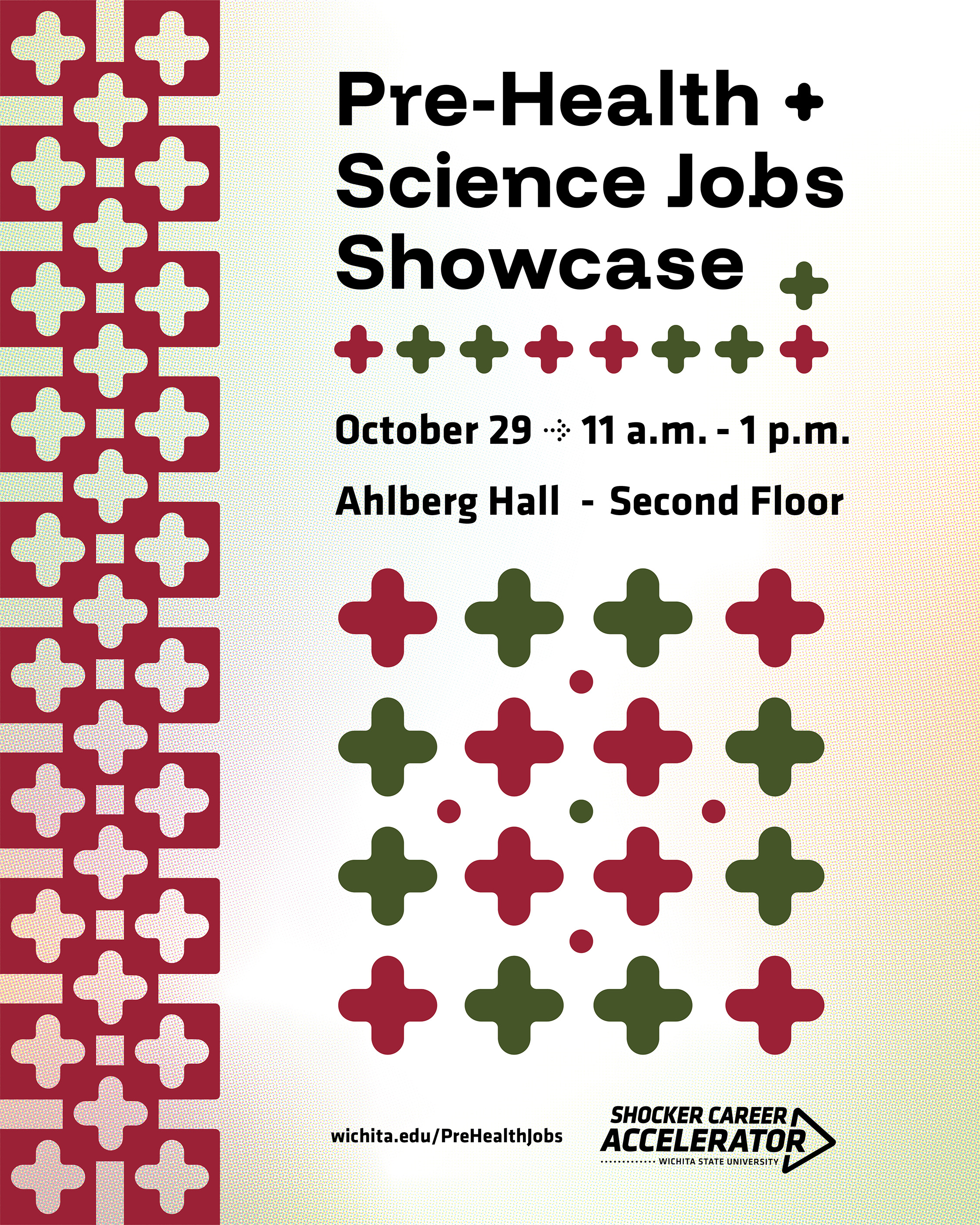 Challenge: Create a poster, social media graphics, and campus tv design for the Pre-Health and Science Jobs Showcase.